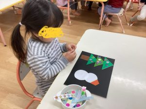 出来上がったツリーにはシールを貼り、可愛く飾り付け💖