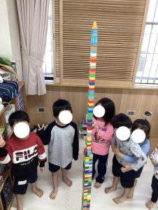 他にもすみれさん、ゆりさんで協力してくれたブロックを高く積み上げたり、、、